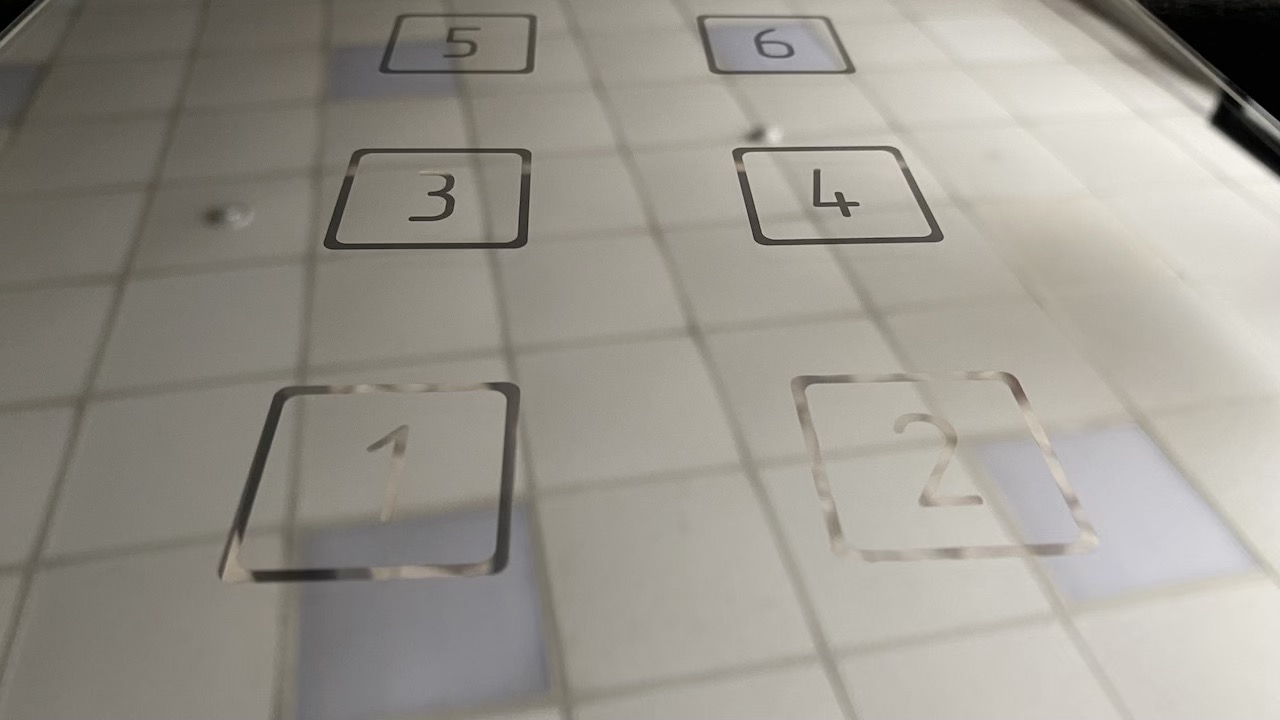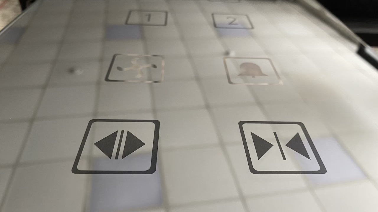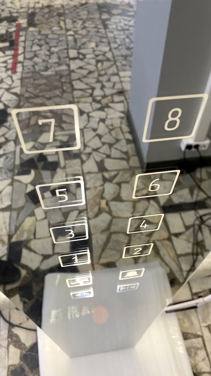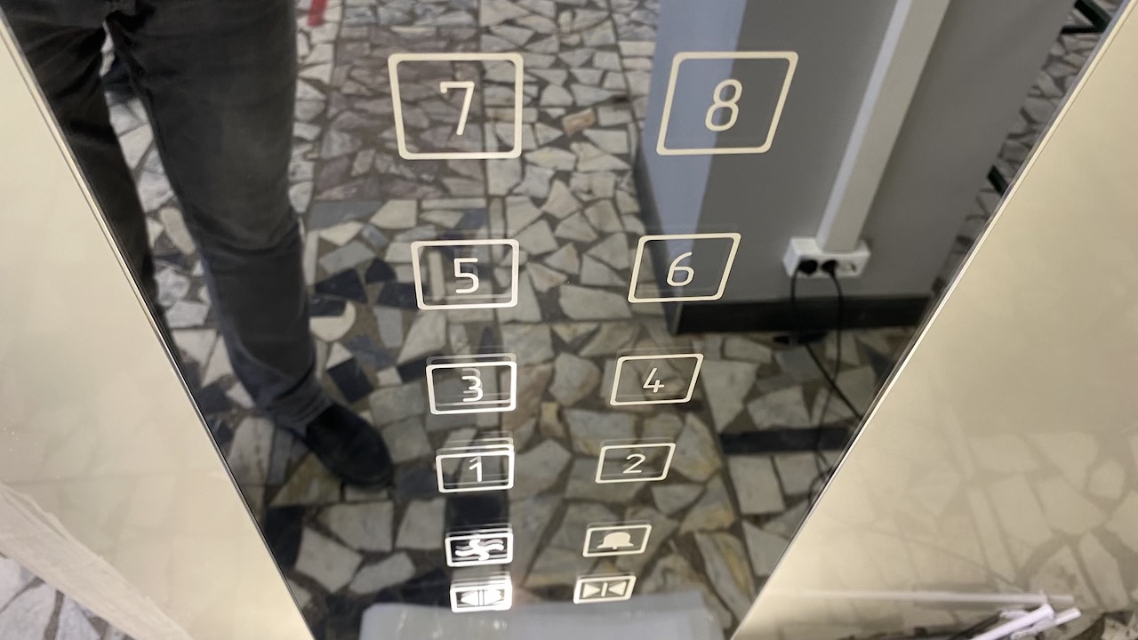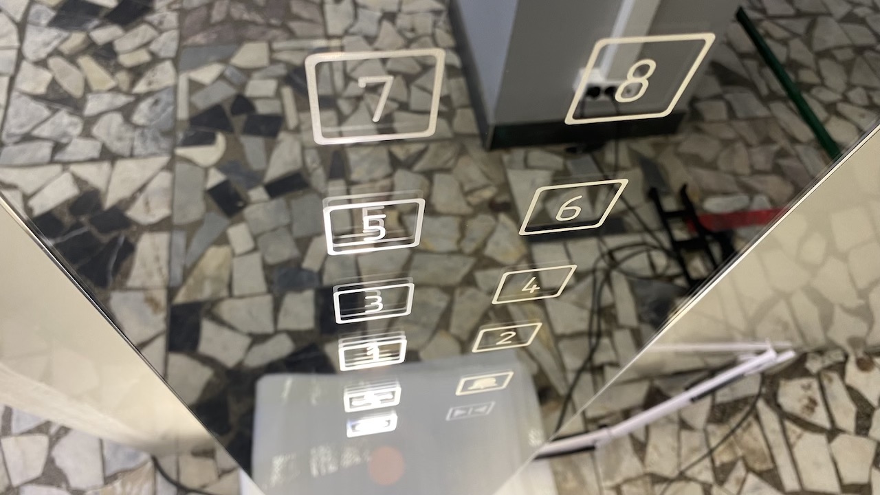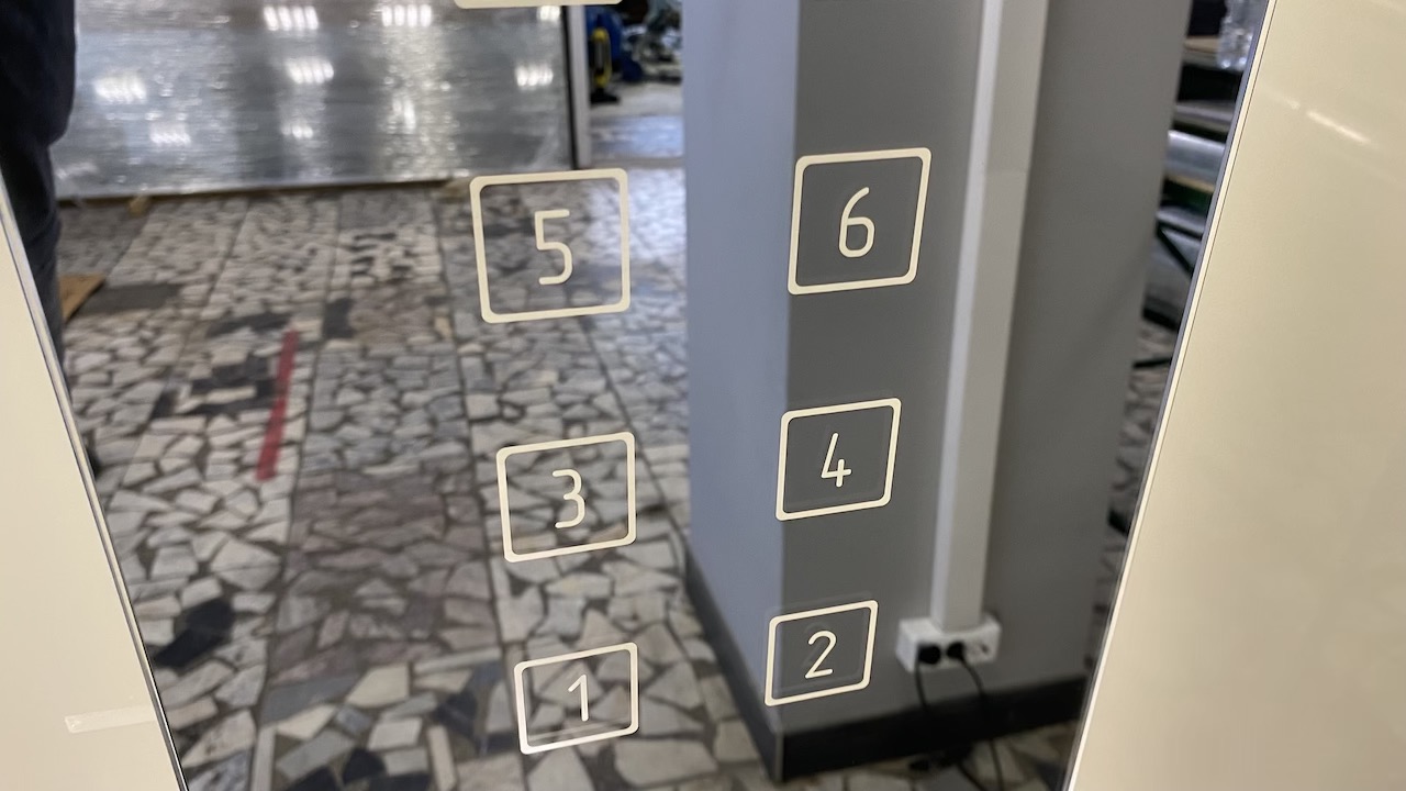 Отработать технологию и подготовить образец стекла для сенсорной панели лифта с зеркальным покрытием таким образом, чтобы на поверхности были символы кнопок, а также прямоугольная зона для скрытого размещения ЖК дисплея, при этом зеркальный эффект на стекле панели должен быть сохранен.
