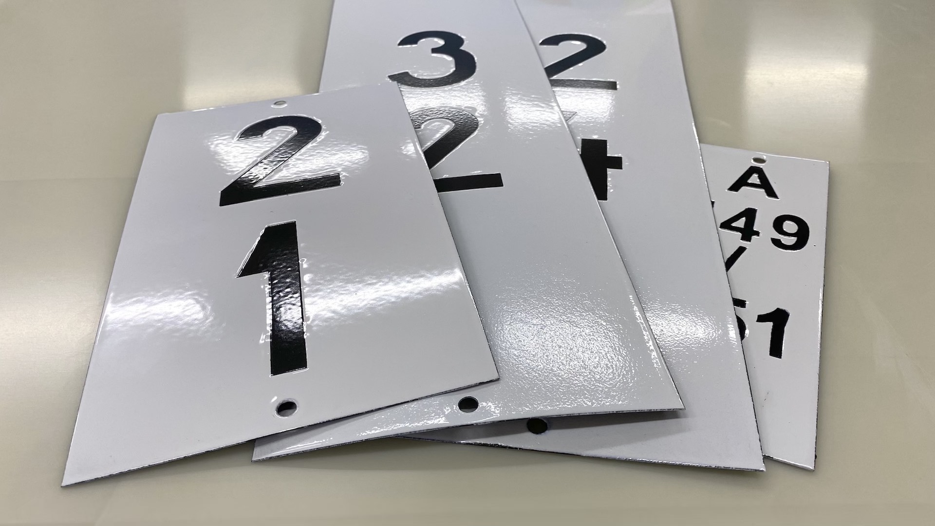 В качестве основы для эмалированных табличек применяется специальная сталь 06-ФБЮАР, обладающая необходимыми характеристиками и соответствующим легированием. Перед заказом необходимо четко определится с назначением будущего изделия, его формой и размером, а также цветом. Определить как будет крепиться литерный знак, в каком месте будут находиться крепежные отверстия, какого они будут диаметра. Необходимо иметь в виду, что литерные таблички с мелкими символами, высотой до 10мм или фотографические изображения, предполагают изготовление специальных декалей. Это, в свою очередь, приводит к значительному удорожанию, поэтому лучше всего стараться не усложнять макет, чтобы литерный знак был максимально читаем и прост в изготовлении.