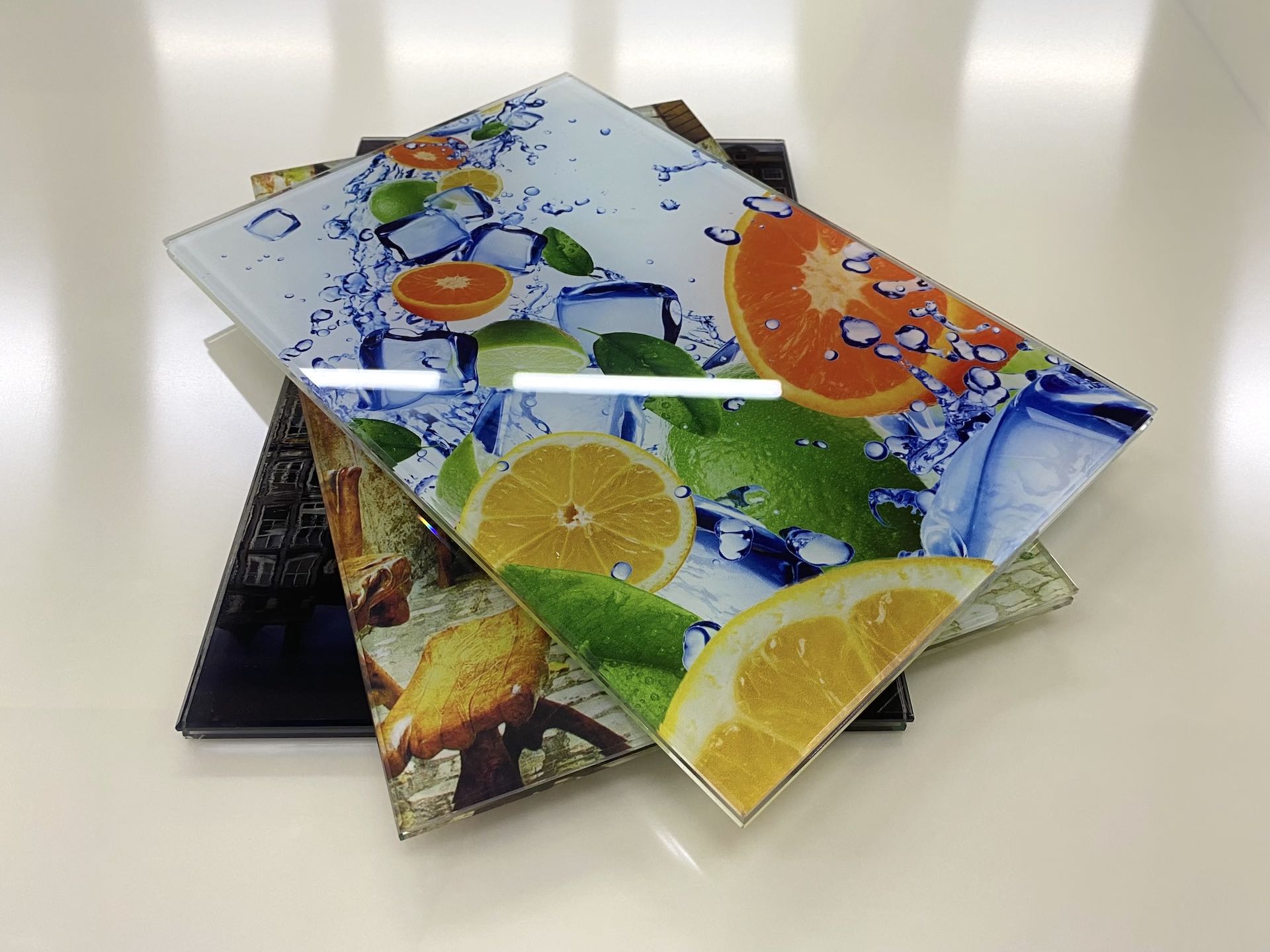 Размеры изделия ограничены размерами стола УФ принтера. Как правило, производители оперируют оборудованием, способным сделать стекло высотой до 2,5 метров и шириной до 1 метра. Тут существует чёткая взаимосвязь, чем больше размер стола принтера, тем он дороже. Мало кто может себе позволить принтер со столом размером более 3 метров, поэтому если Вы предполагаете изделие больших габаритов, то лучше озаботиться поиском исполнителей заранее.